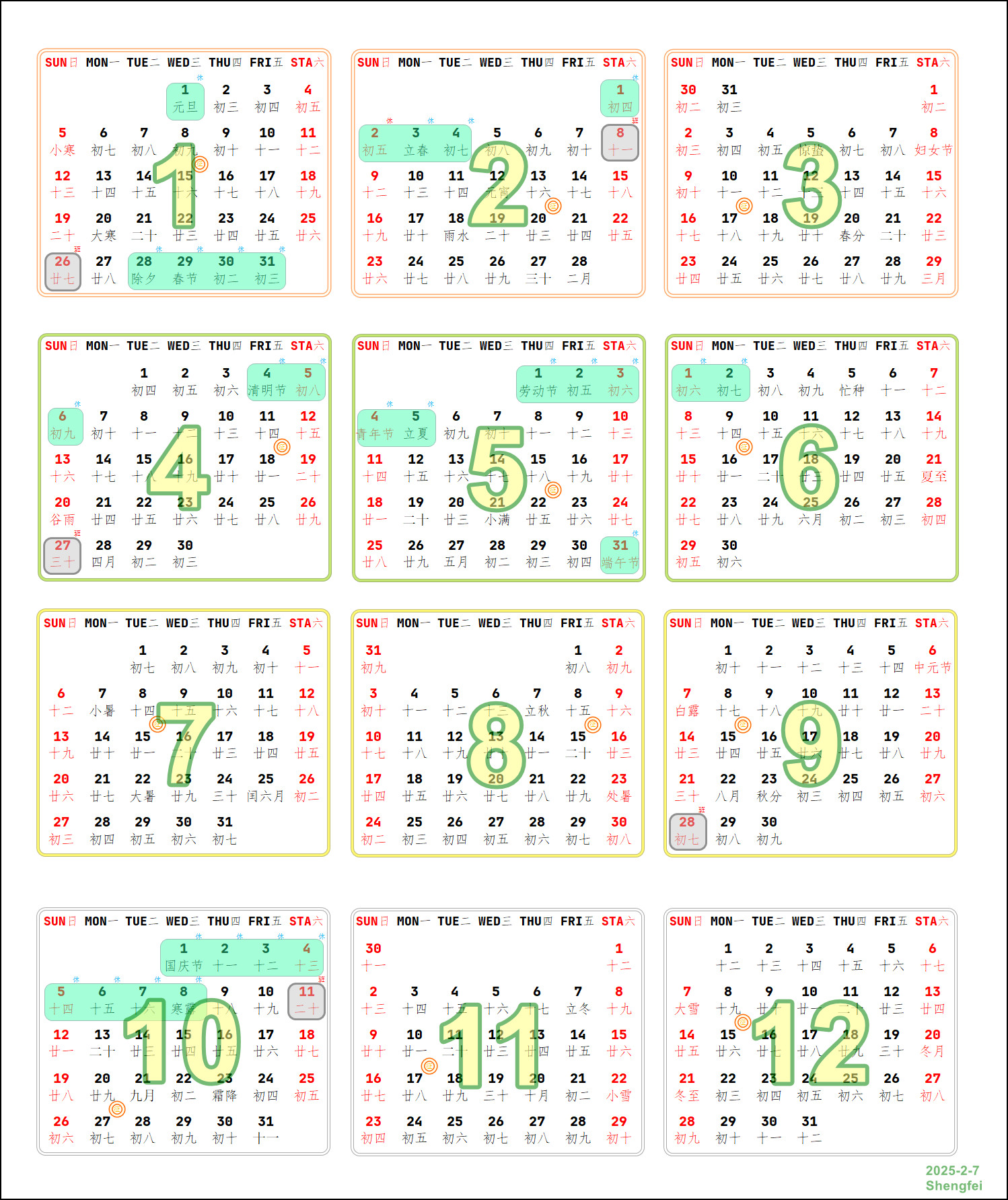 2025年征期日历,带有红圈显示“征”字的就是每月征期: